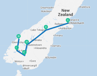• Christchurch – Tekapo – Queenstown – Milford Sound – Queenstown – Christchurch