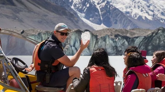 Depart from Mount Cook Village on a thrilling bus trip that takes you to Tasman Valley. After a 25-minute alpine walk, you will board a unique boat tour like no other. The experience will be truly magical as you will witness the gigantic Tasman Glacier Ice wall surrounded by snow-capped alps, with expert guidance throughout the journey.