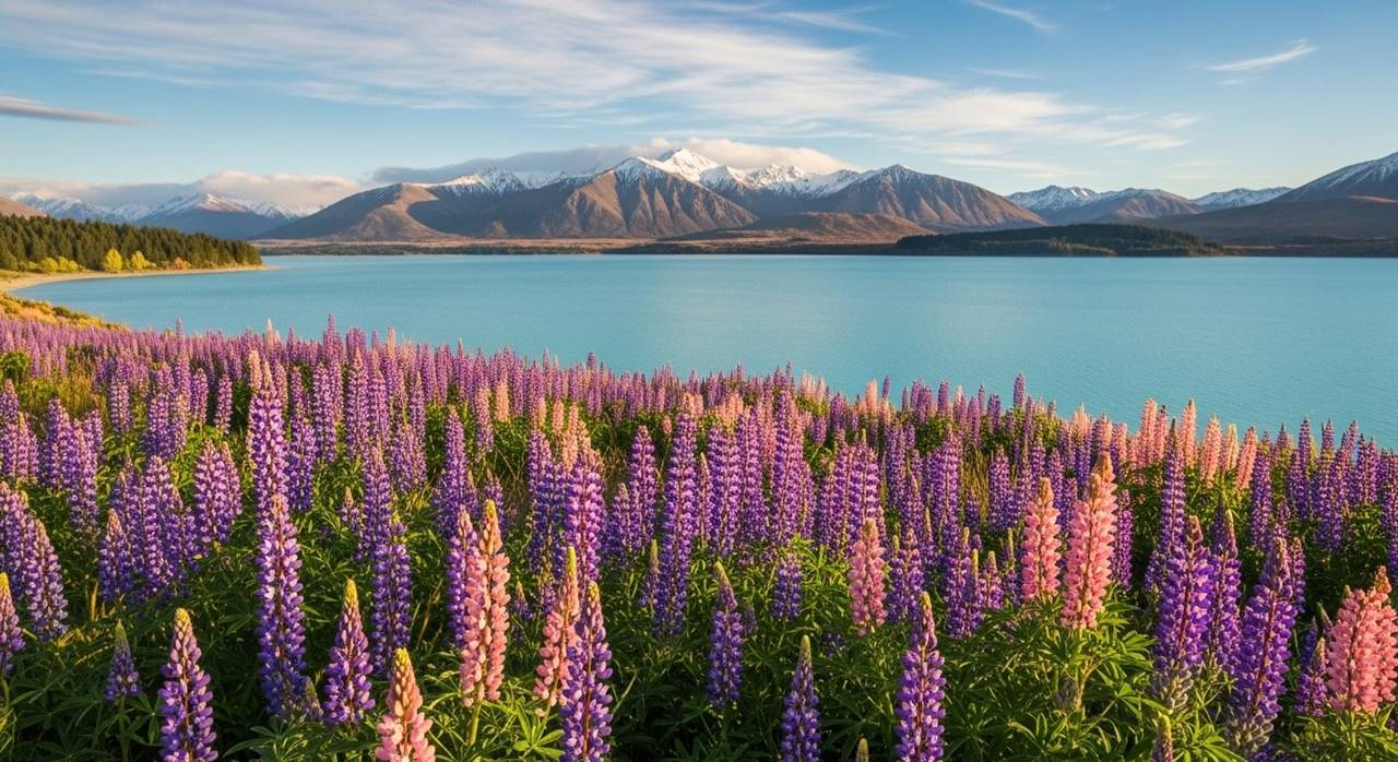 • Blooming Lupins: From late October‚ the famous lupins of Lake Tekapo bloom around the Lake Tekapo and the surrounding Mackenzie Basin and along the shoreline‚ forming a colorful coastline of purples‚ pinks and whites․